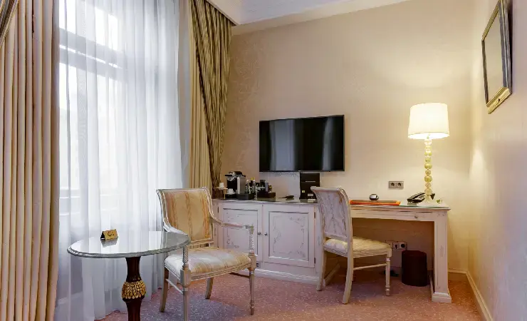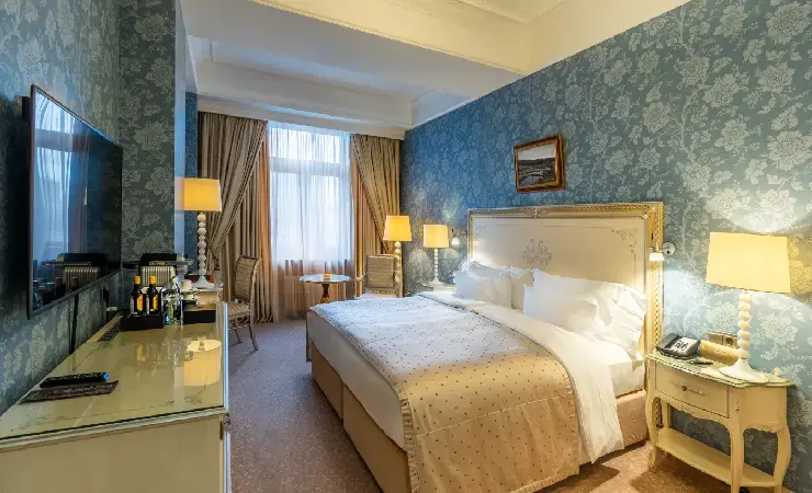 تتمتع سقوف عالية الطراز الكلاسيكي الداخلية والأثاث الإيطالي الدرجة الممتازة البياضات, الإنجليزية حمام العطور و كل الأجهزة التكنولوجية التي فندق 5 نجوم غرفة يجب أن يكون.سوف تكتشف بيئة مريحة هنا مع ازدهار خيارات الترفيه والإلهام فعالة ومجزية العمل.