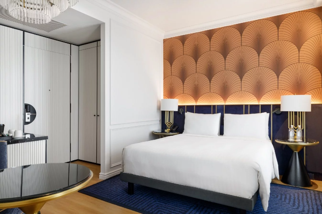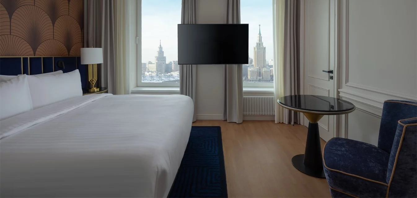 تزج نفسك في جو من الراحة المكرر والتصميم المعاصر في غرفة مزدوجة.