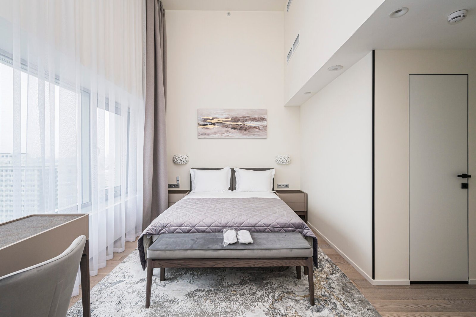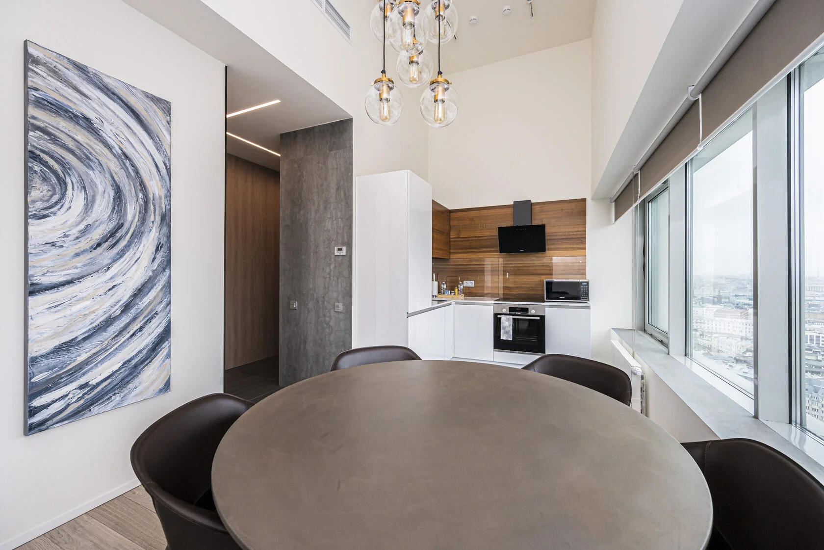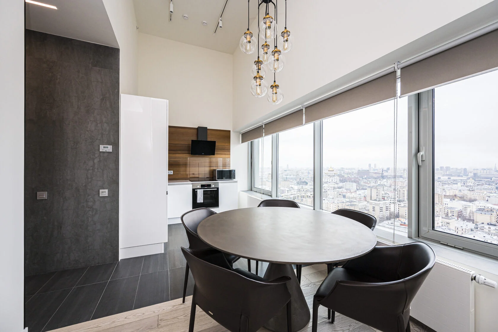 مطبخ مجهز بالكامل الحديثة والأجهزة المنزلية تكييف الهواء المركزية ضمان إقامة مريحة.