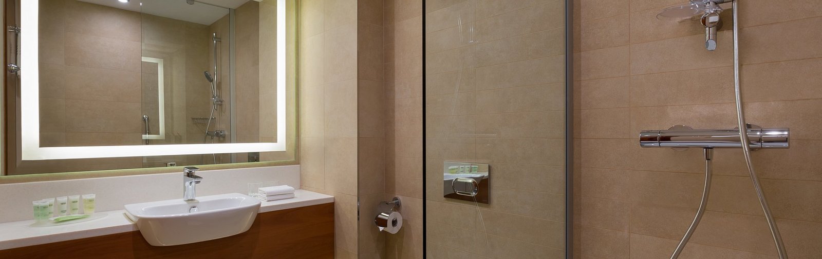 معدات الحمام: كابينة دش, مجفف شعر, مناشف, مستحضرات التجميل
