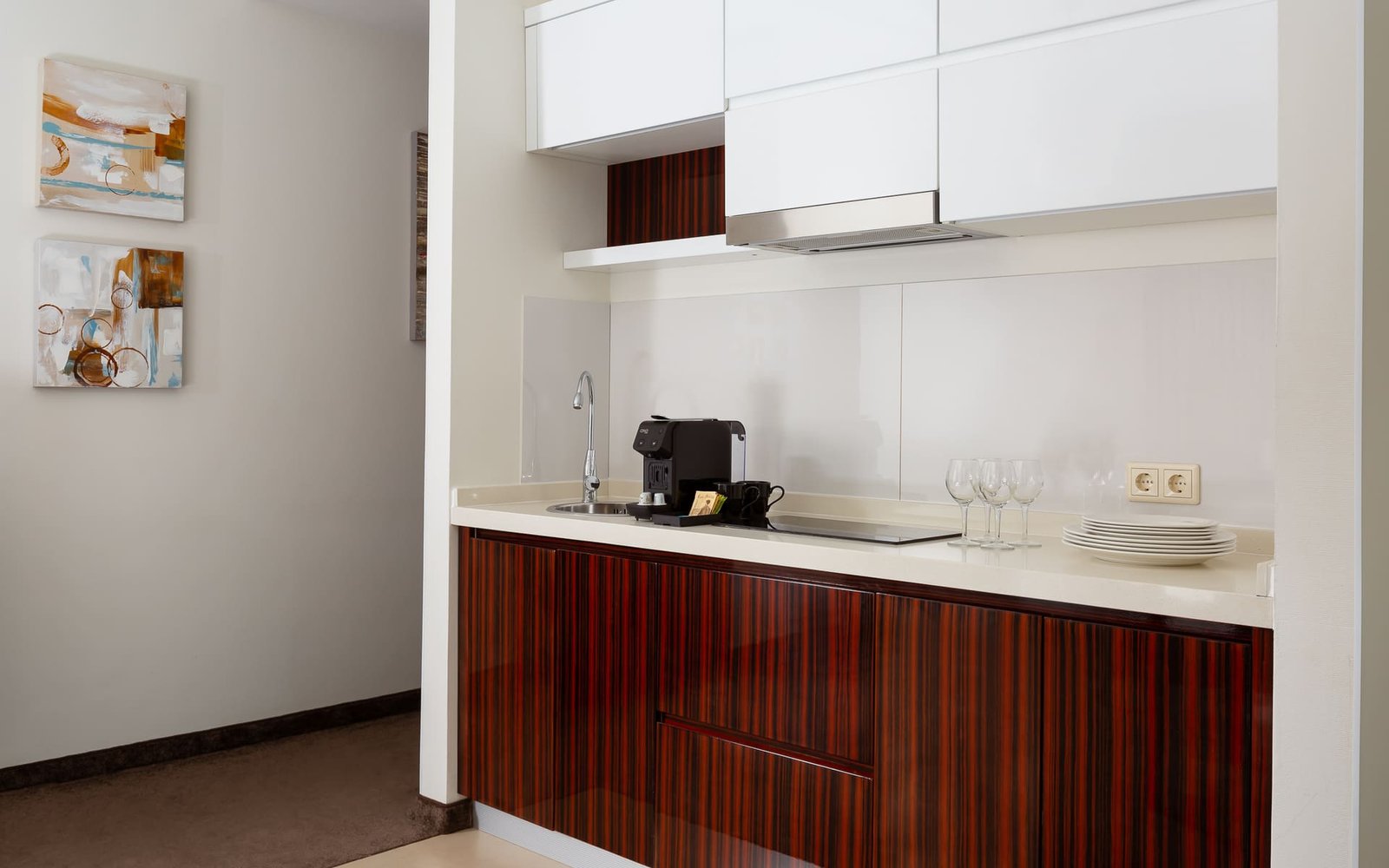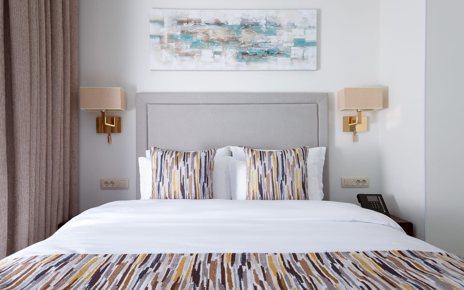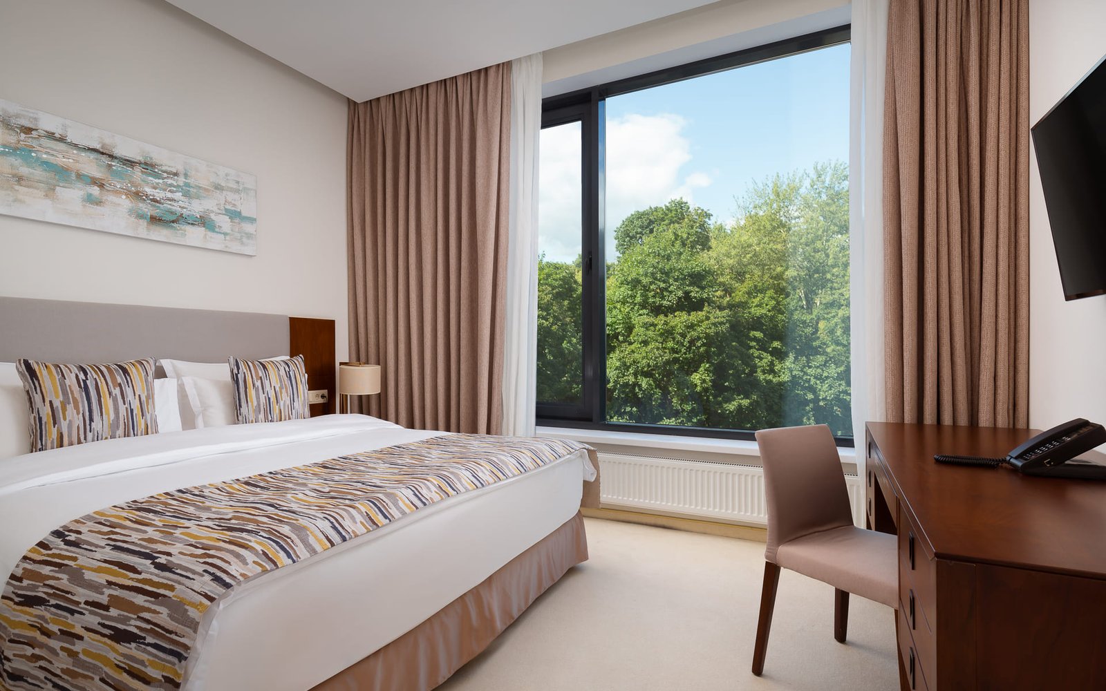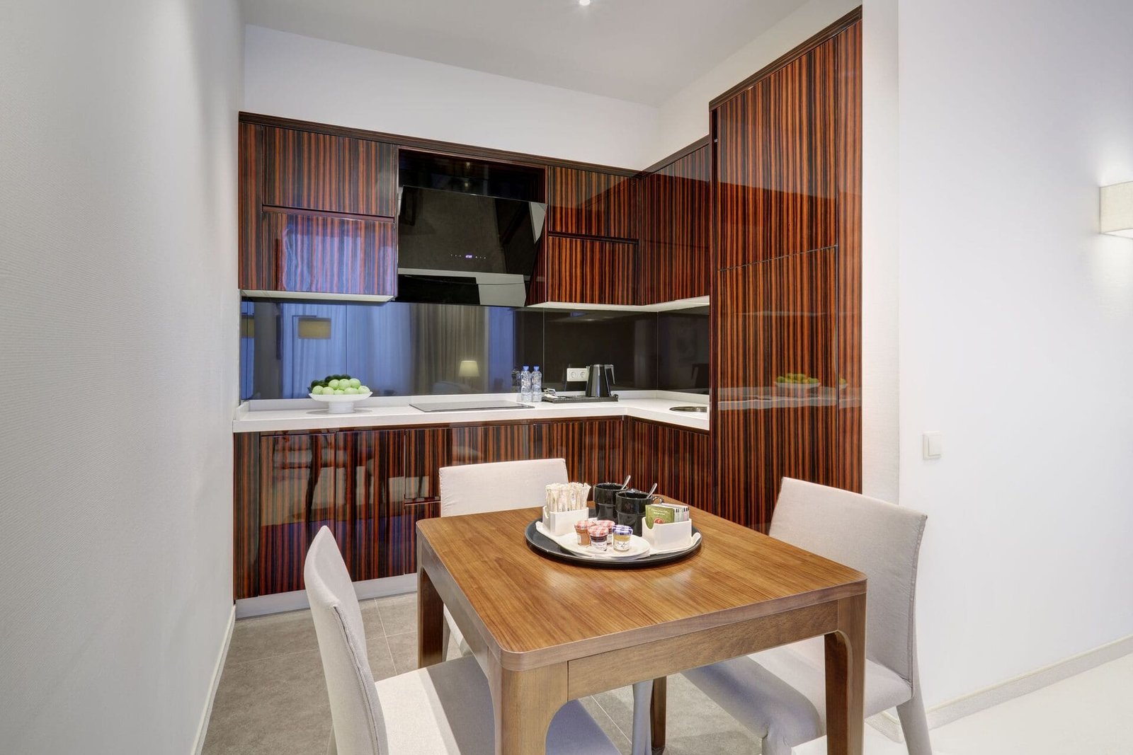 Luxury apartments with an exquisite design with an area of up to 72 sq.m. are an ideal choice for long–term stays of several people and families with children. The room is equipped with two bedrooms, a separate living room with a sofa and upholstered chairs, and a modern ergonomic kitchen. Spacious and bright rooms, functionality and comfort are the distinctive features of Palmira Business Club apartments.