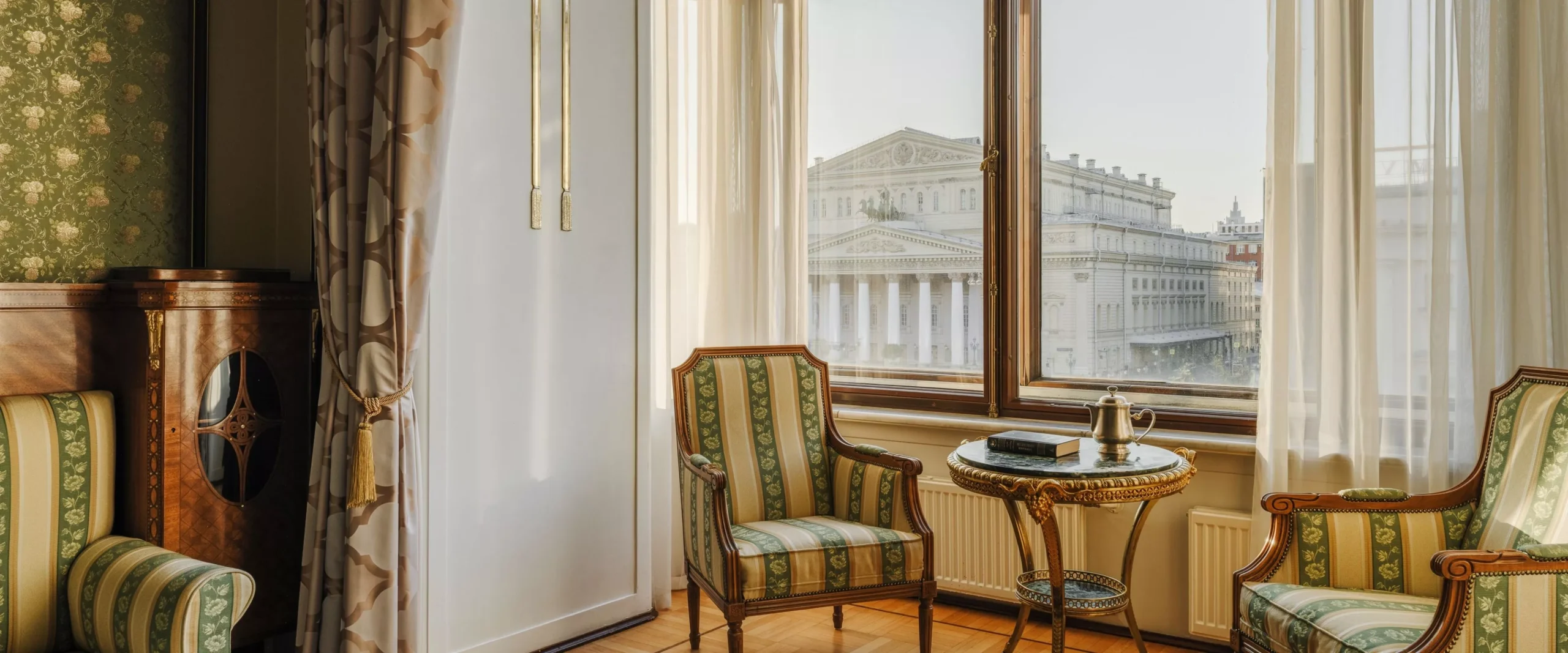 Bolshoi Suite will give unforgettable impressions of staying in the historical center of Moscow. Spacious rooms, refined furniture and a view of the Bolshoi Theatre make this room an ideal choice for true connoisseurs of elegance.