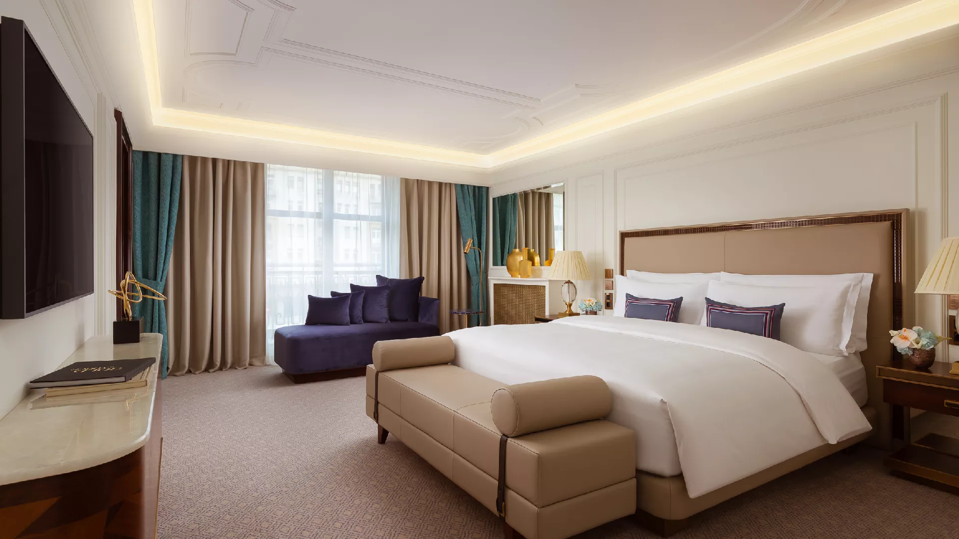 Corner Two-Room Carlton Suites overlook the historic heart of the city, with elegant views of the Kremlin’s iconic towers.
