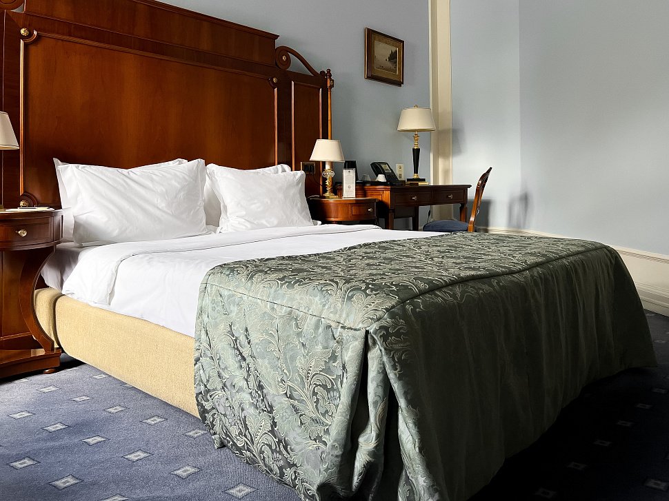 Enjoy luxurious hotel accommodation in Moscow at Hotel Savoy Moscow. Our hotel’s Classical rooms are furnished with elegant Italian furniture and decorated with different colors on each floor (26 sq. m). It features a queen-size bed with an orthopedic mattress, hypoallergic pillows and bedclothes, safe, minibar, and mineral water.