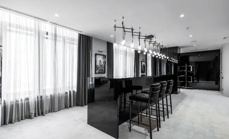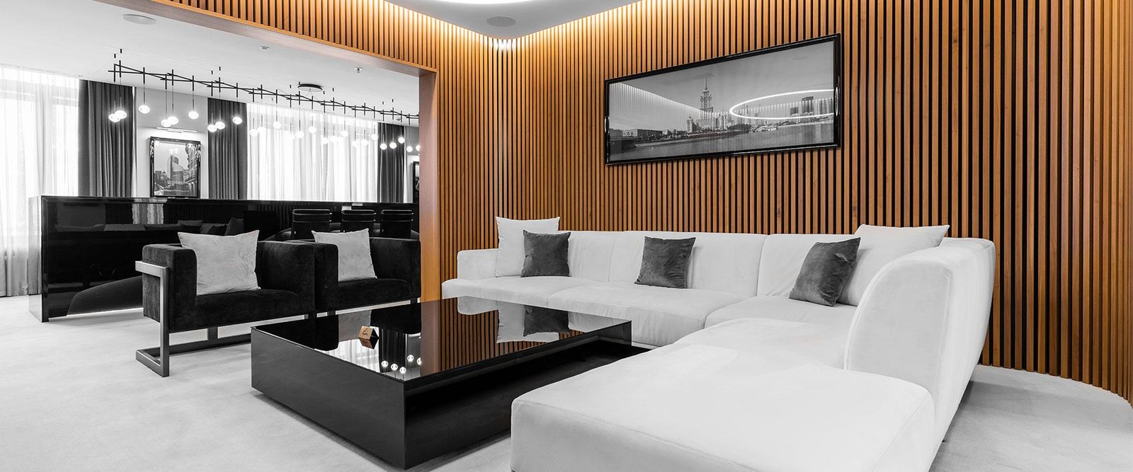 There is no need to prove the status of the best ones: design is represented in the style of modern luxury and executed in a minimalistic color scheme. Comfortable zoning creates an impression of spacious interior, where the space literally flows from one zone to another. Collection Suite has an entrance hall, living room, bedroom, big bathroom and dressing room.