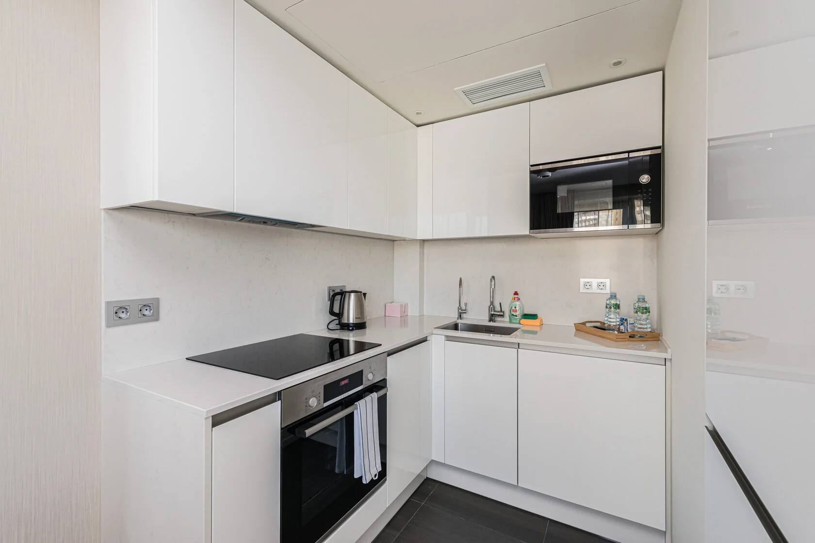 Fully equipped with modern appliances including dishwasher, washing machine, and coffee machine for convenience.