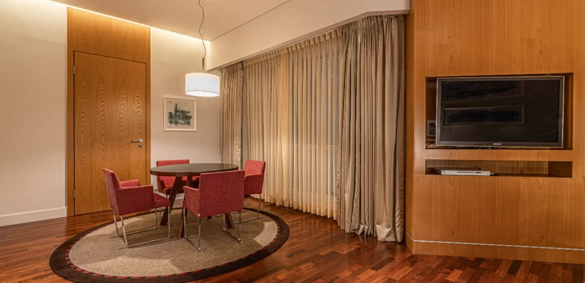 This two-bedroom, 70-square-meter apartment is ideal for a dynamic executive. Located on the hotel’s upper floors, it features a separate spacious bedroom, a living room, and a bathroom with a bathtub and shower. The cozy, thoughtful furnishings provide the ideal environment for work and relaxation, while the luxurious panoramic views of the city guarantee inspiration for even the most ambitious projects.