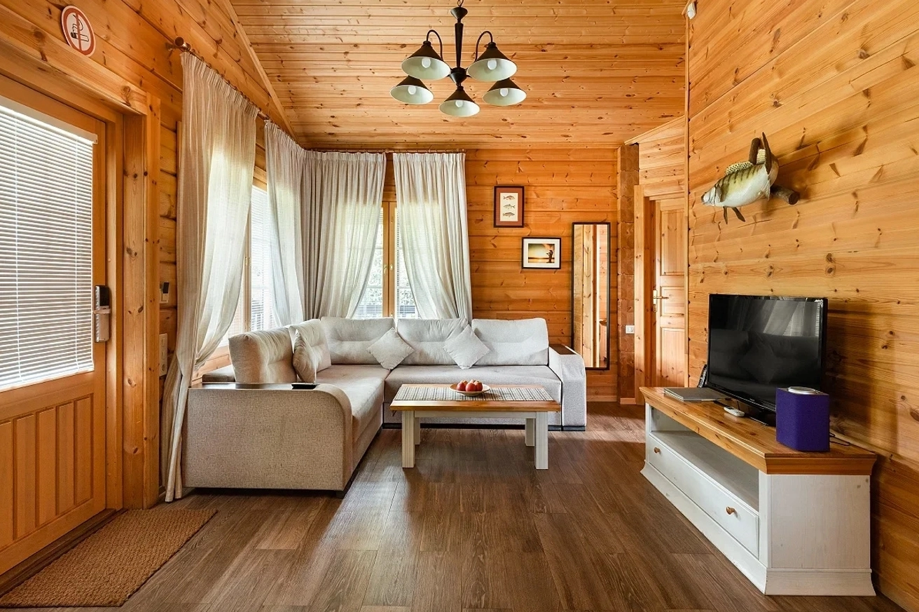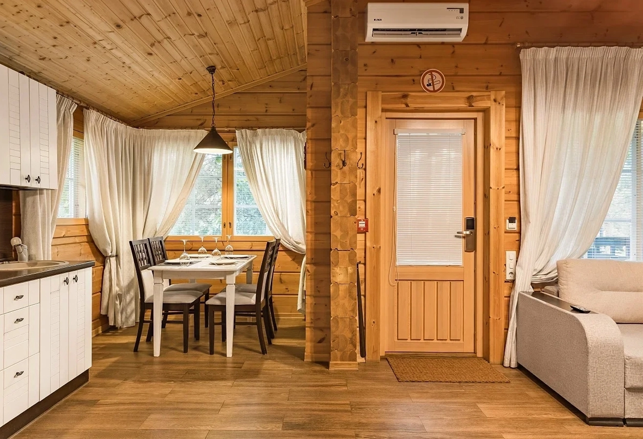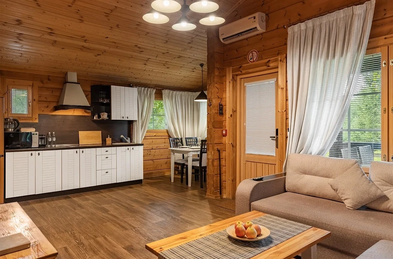 Family Suite Cottage with an area of 54 sq.m. The cottage is equipped with two bedrooms and a spacious living room, which allows you to comfortably accommodate a family or company of up to 3 people, as well as an additional place for a child from 3-12 years old for an additional cost of 3000 rubles per day. Family Suite is the widest category of the hotel, the complex has 35 such cottages in total.