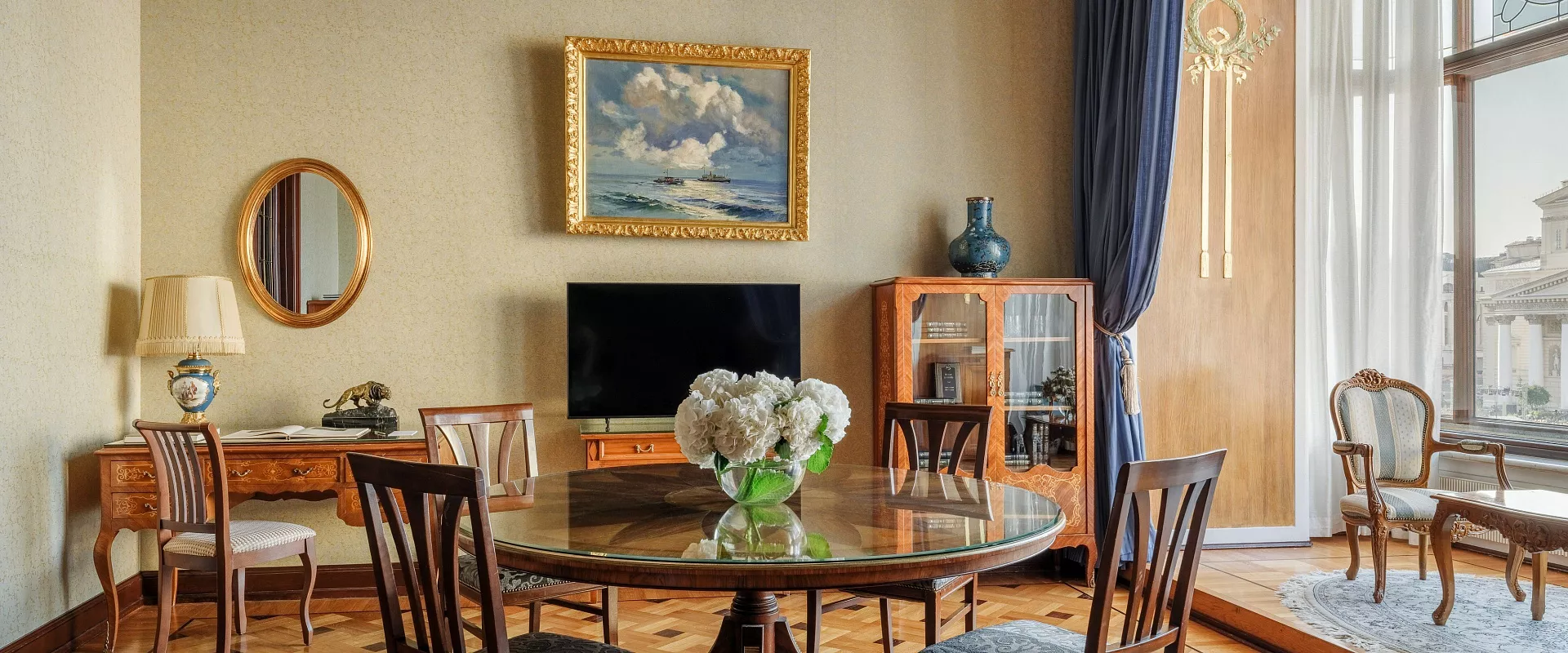 Immerse yourself in the atmosphere of the past in the Historical Suite, whose interiors preserve the spirit of the great “Metropol”. Spacious rooms, antique furniture and a panoramic view of the heart of Moscow make this suite a true gem of the hotel.