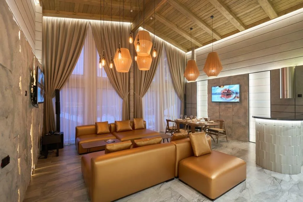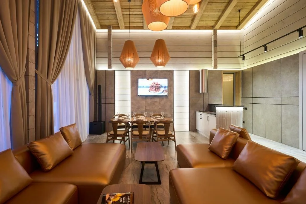 A spacious 180 m² house with its own bathhouse, offering a full set of facilities for relaxation and group gatherings. The property includes water zones, relaxation rooms, and outdoor amenities. Ideal for guests seeking a premium leisure experience in a private setting.