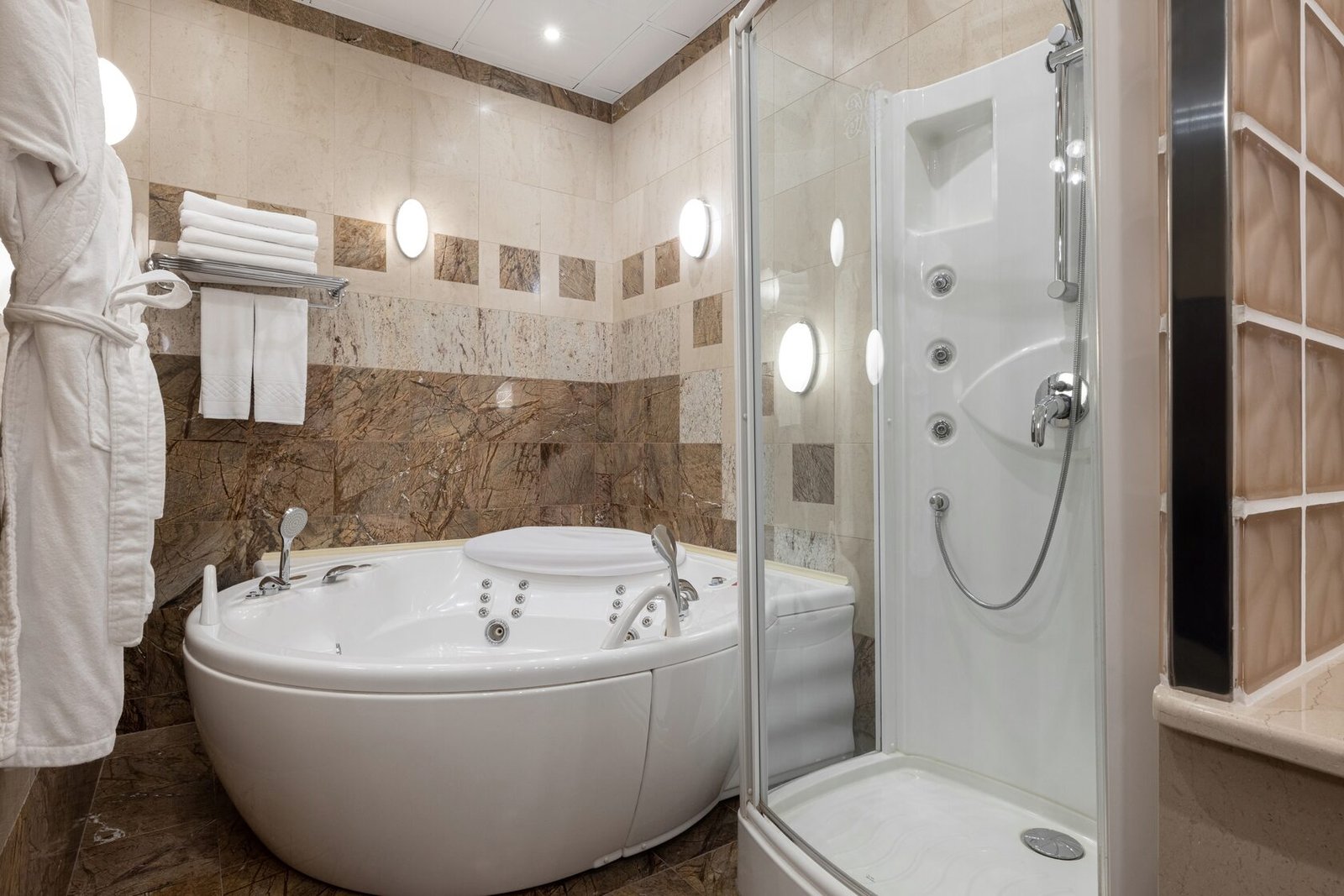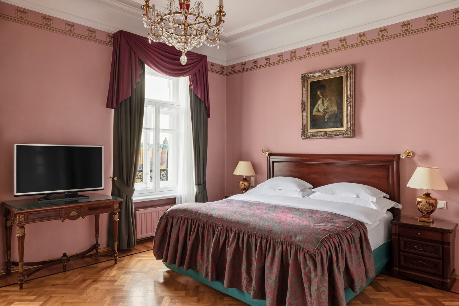 Spacious two-room Kremlin Suites feature a unique collection of fabulous chandeliers made of precious Bohemian glass, original artwork and antique furnishings. The Suites offer spacious sleeping area that is completely separated from the living and working area, ensuring total privacy during informal meetings or social activities. Custom upholstered sofas, rare antiquities, soft lighting and thick carpet imbue the living area with a warm elegance, while the working area with its comfortable writing desk, chair and reading light makes any business as pleasant as possible.