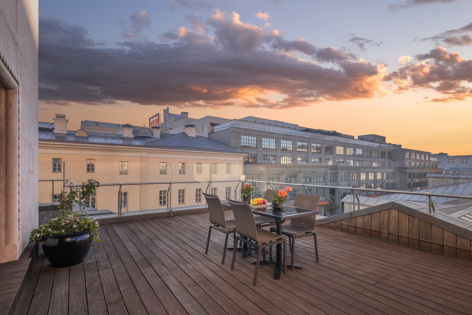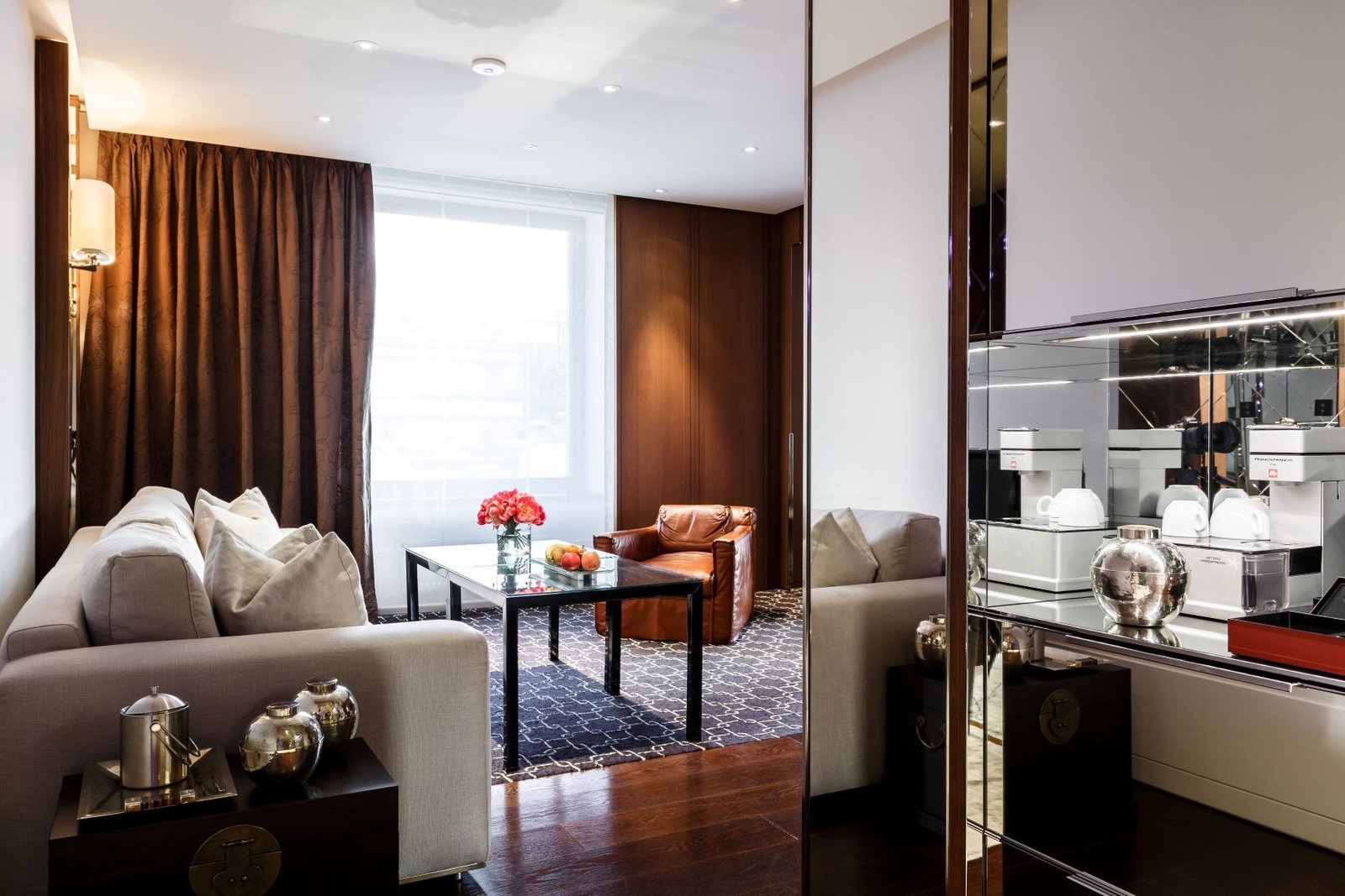 This stunning 70-90 sq m Park Suite with a terrace offers an outstanding interior with picturesque views. The interior combines timeless elegance with modern functionality throughout the thoughtfully designed two-room suite.