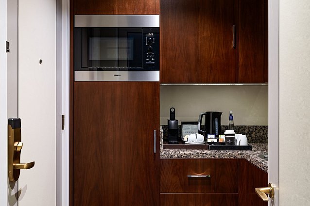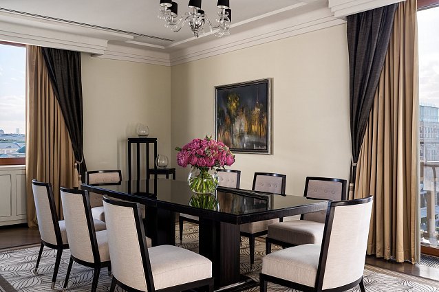 Whether you’re gathering around a table with family or friends or secluded on the balcony, these one-bedroom suites will provide you with a cozy home in Moscow.