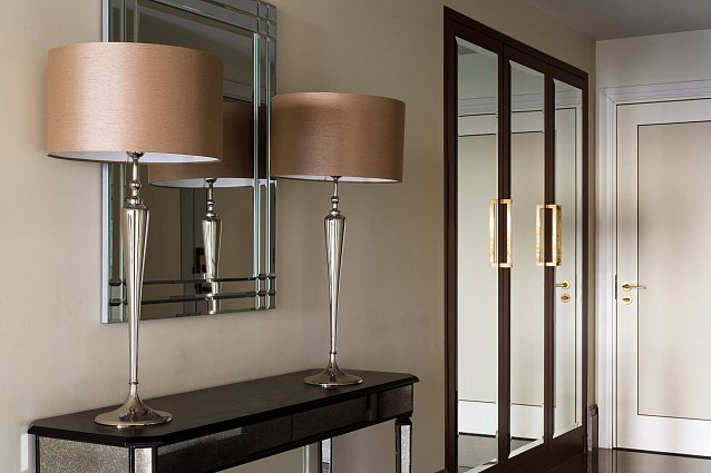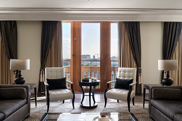 The apartments range from 166 to 198 square meters. They feature a spacious bedroom, comfortable upholstered furniture in the large, bright living room, and a dining area for 8, perfect for spending time with loved ones or hosting a formal dinner. Panoramic windows overlook Manezhnaya Square, Tverskaya Street, the Duma, and the Bolshoi Theater.