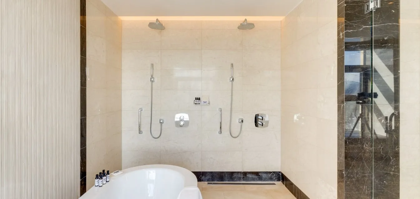 Use a spacious 114 sq. m. m with a separate small kitchen and dining room, a large double bed (King) measuring 200×200 cm and an impressive view of the city from the panoramic windows. This is a premium suite.
