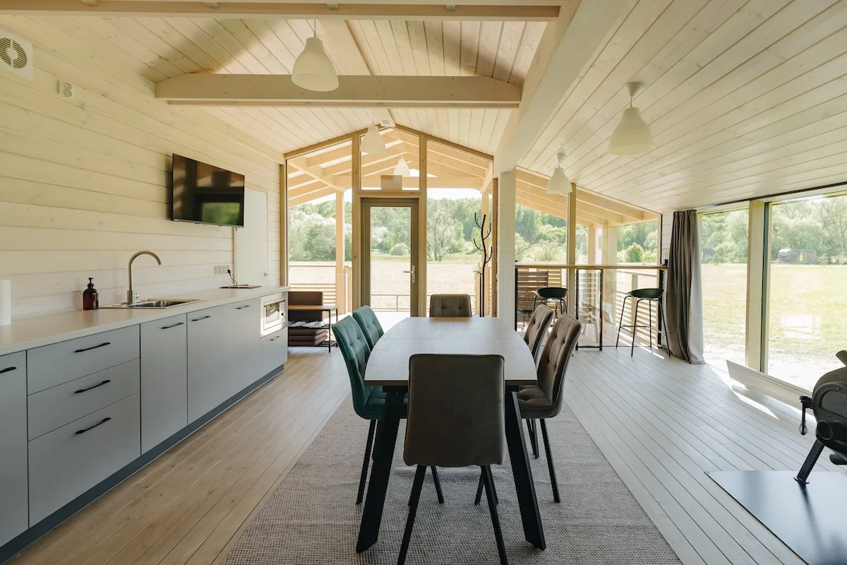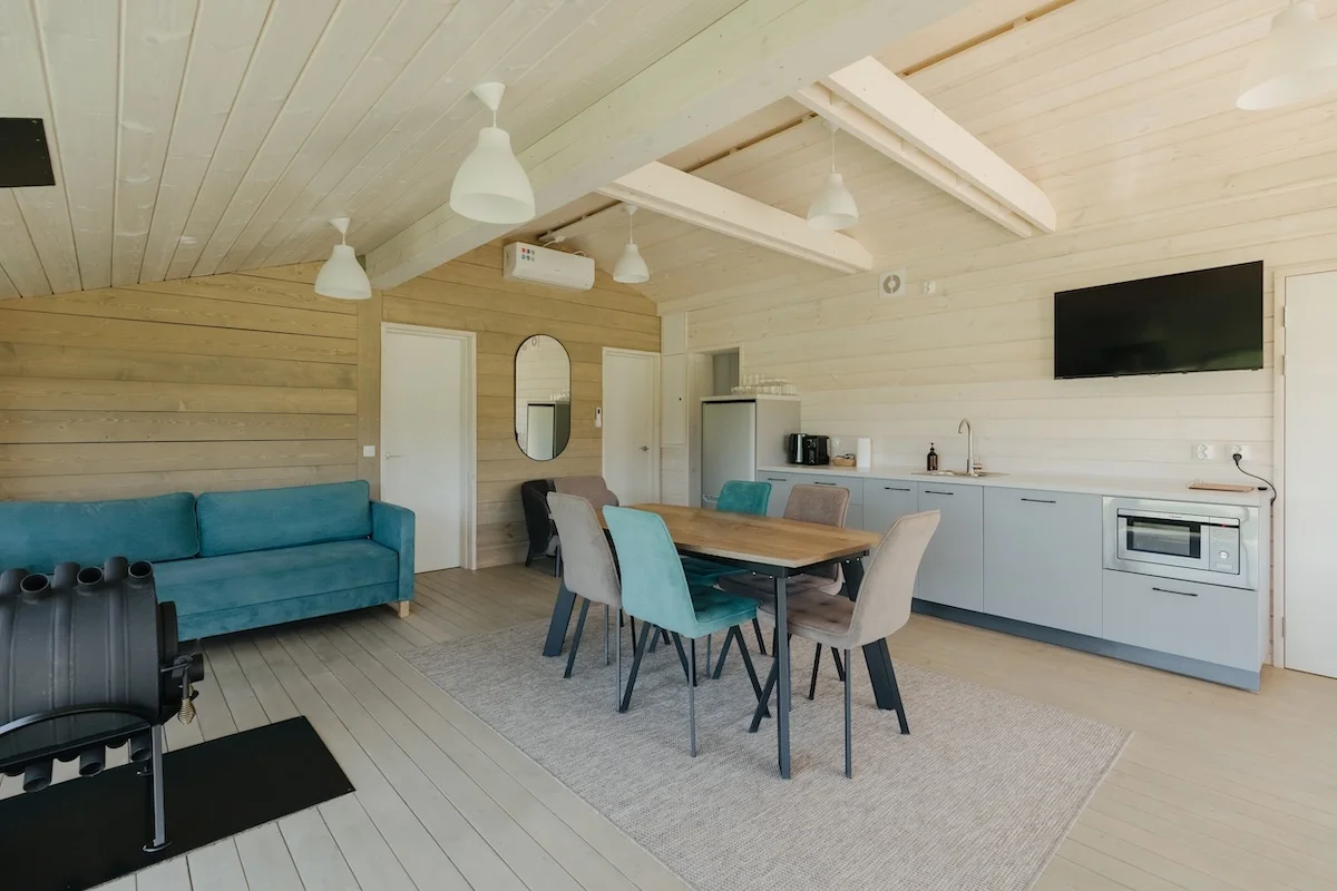 Rider House is a 65 sq. m. view cottage. It is located at a distance from the main territory of the hotel. The main feature of the cottage is the beautiful scenery at any time of the year with horses grazing in the field and an all–season outdoor hot tub.