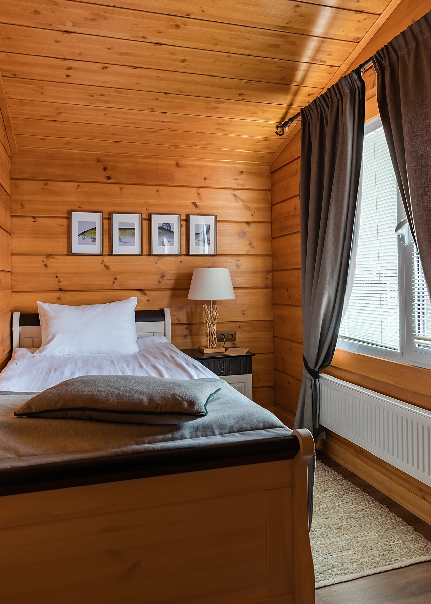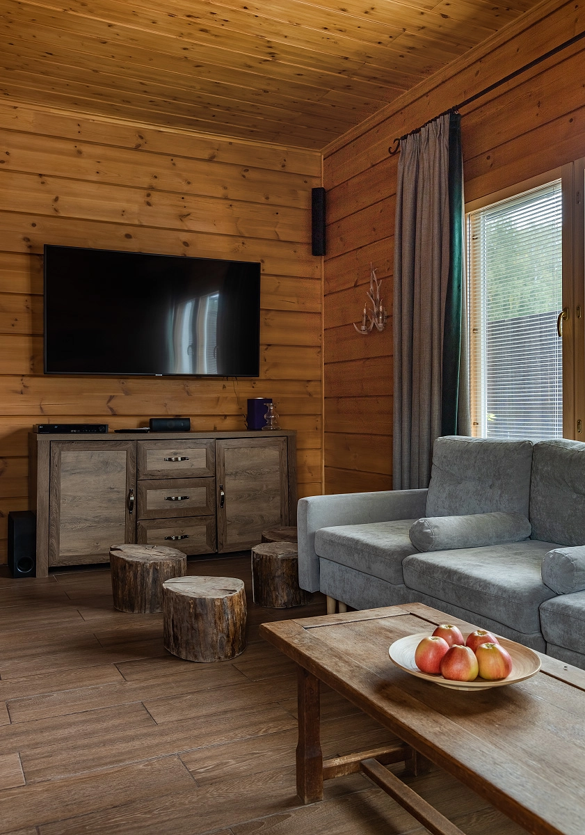Spa Residence is a unique comfortable cottage with a spacious living room, three bedrooms and its own SPA complex. It is ideal for a comfortable stay for a family or a company of up to 6 people. The main seats can accommodate 5 people, and it is also possible to accommodate the 6th guest in an additional place. The cost of an additional seat is 3000 rubles per day. This category of cottage is in a single copy on our territory.