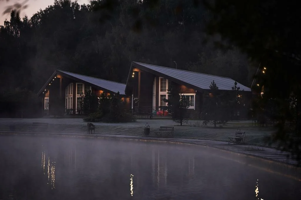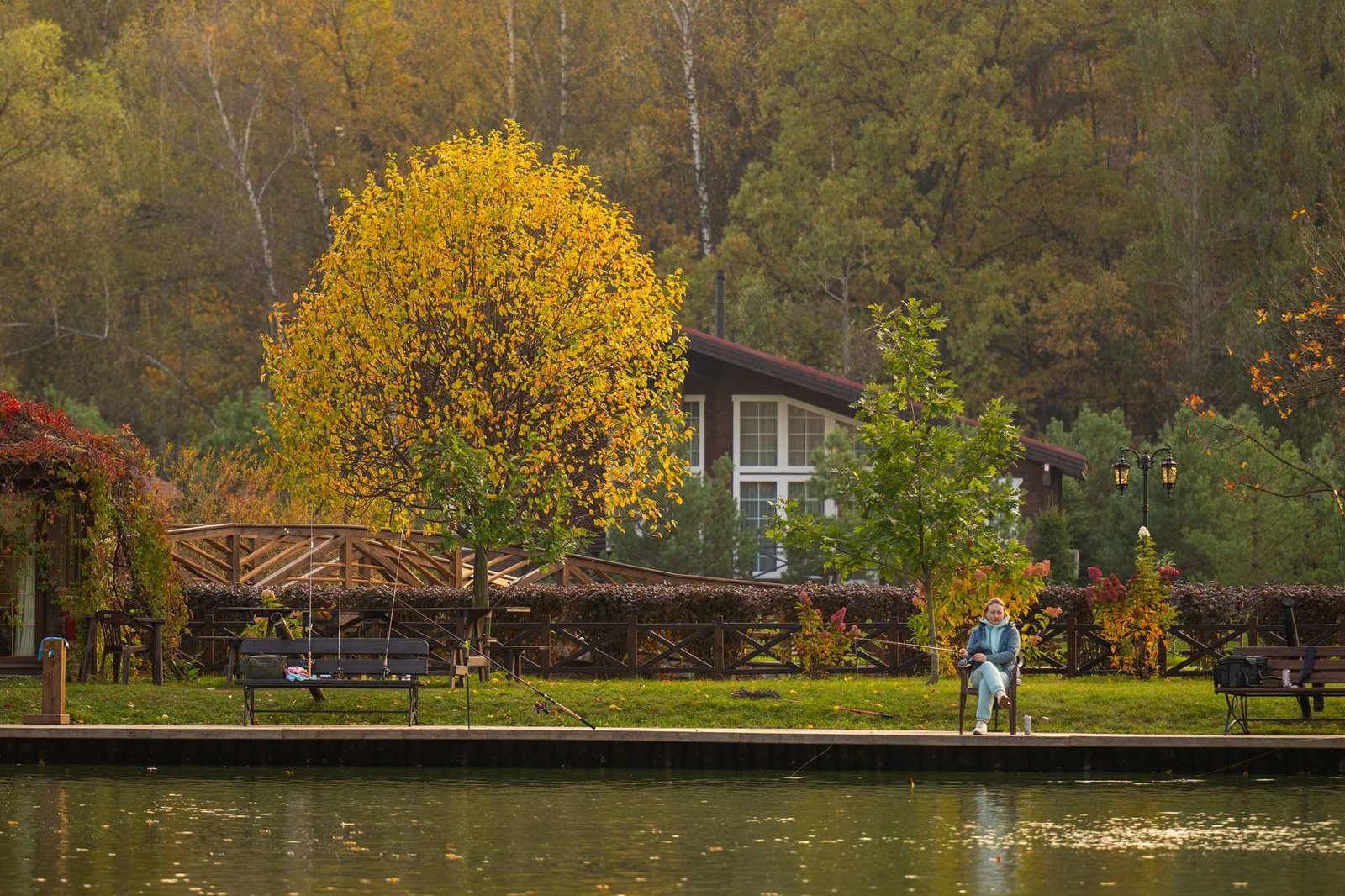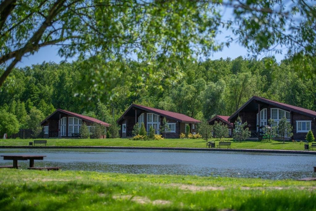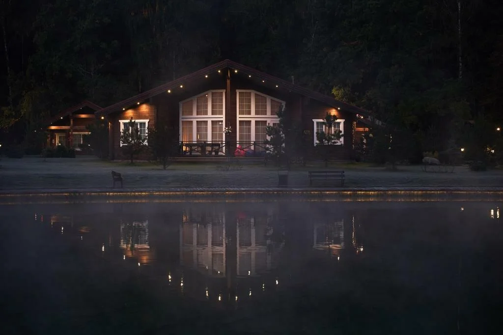 A spacious house with panoramic windows offering serene views of the pond and club grounds.