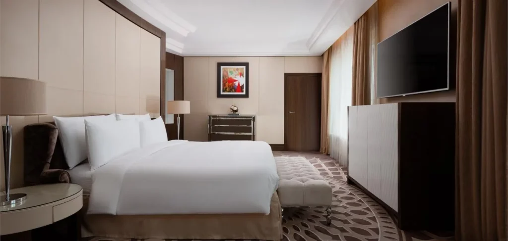 This 89 sq m suite features two separate rooms: a large bedroom with a walk-in